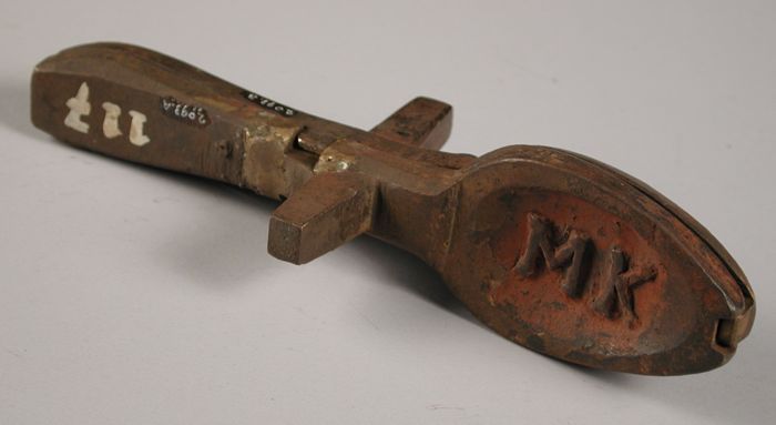 Tweedelige bronzen mal voor lepel, "W M 1820"