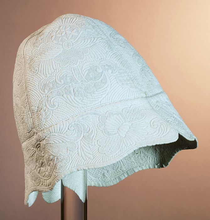 Paar mitaines van ongebleekt linnen met wit borduurw...