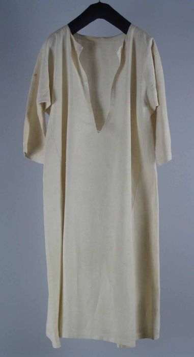 Voetlange japon van blauw grijs batist met witte nop...