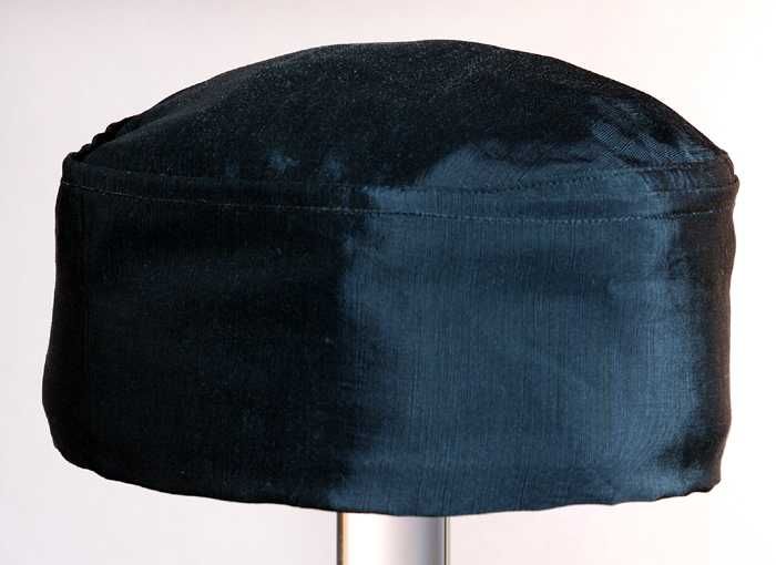 Ronde randloze herenmuts van zwart zijde, reismuts