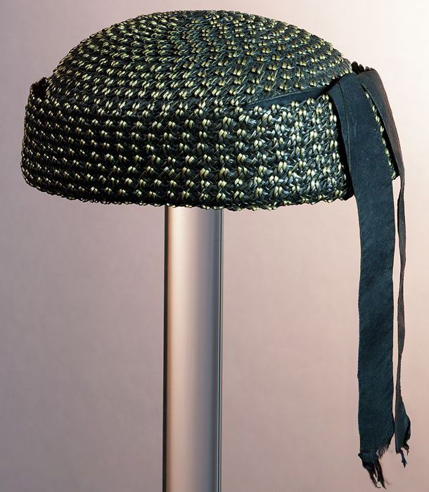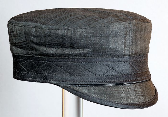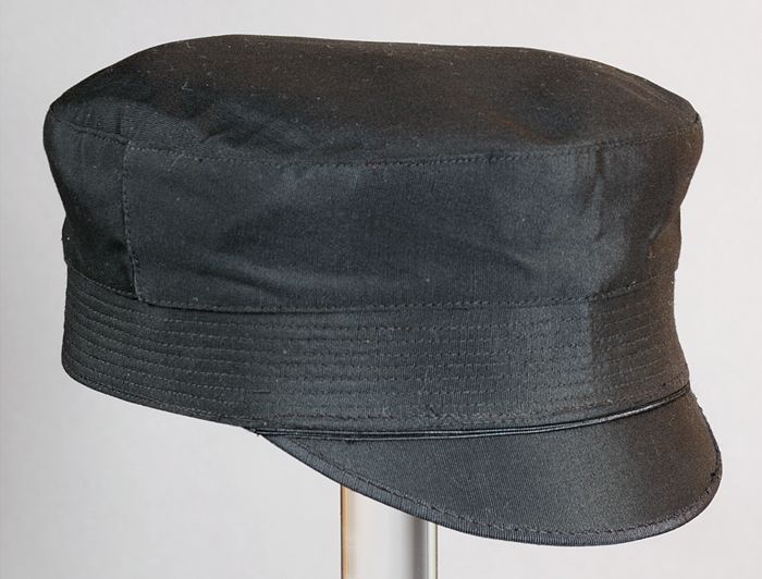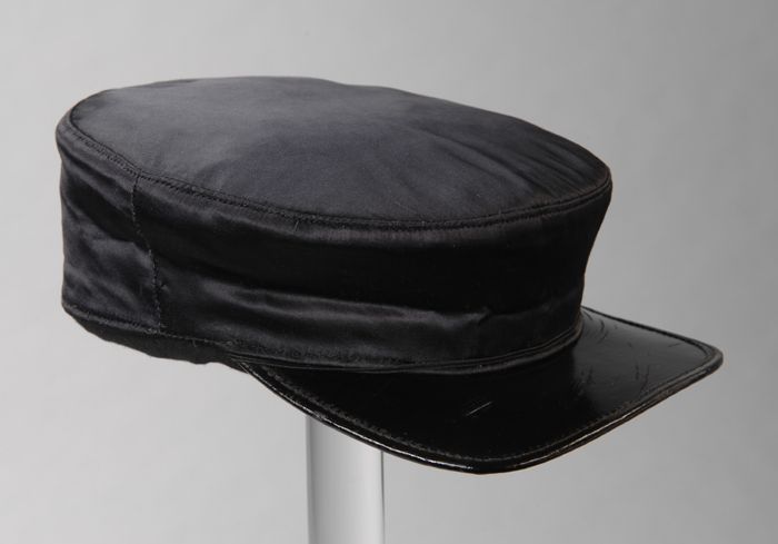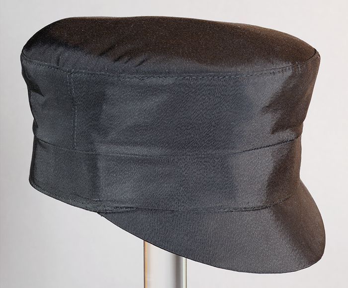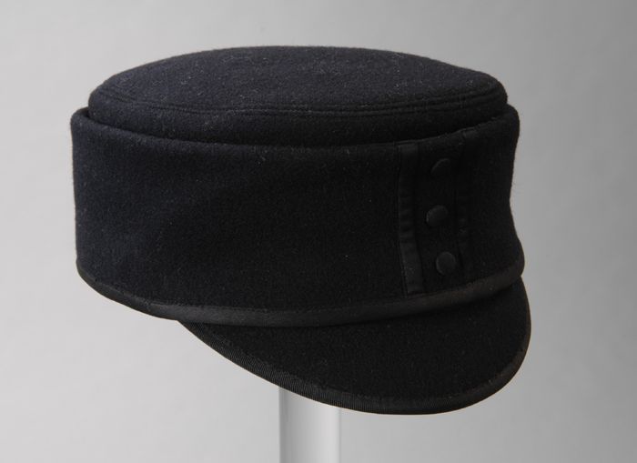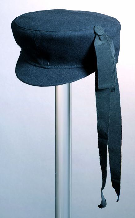 Ronde zwarte cap voor jongens (?), type Duitse caout...