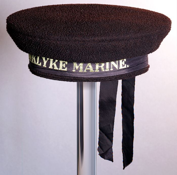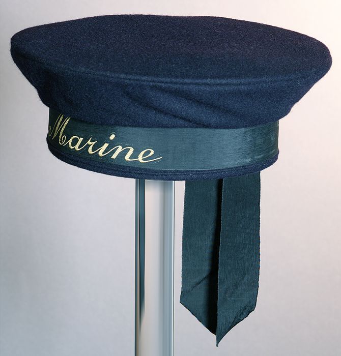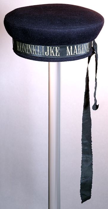 Bruine, ronde matrozenpet, "KONINKLYKE MARINE", twee...