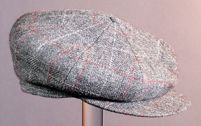 Ronde, grijze met wit-rode ruit, herenpet, RET