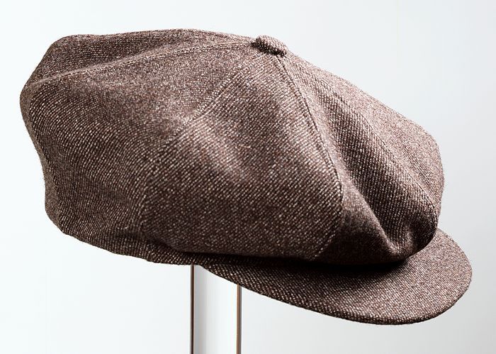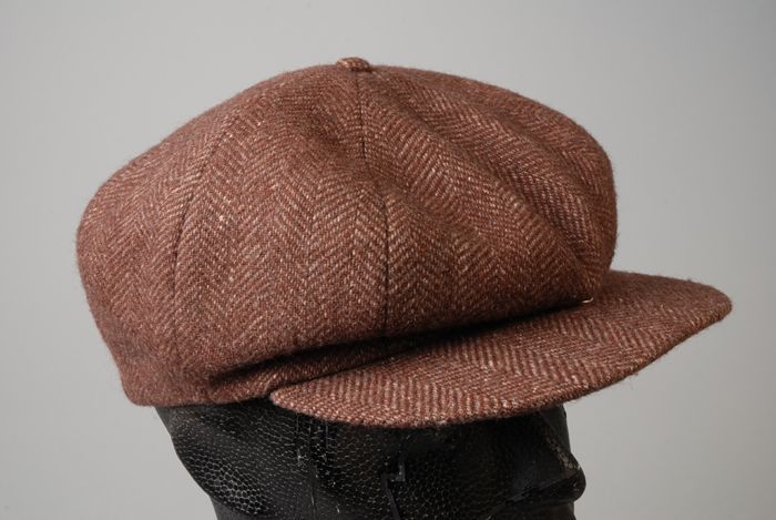 Bruin-witte achtpandige herenpet, klep met drukknoop...