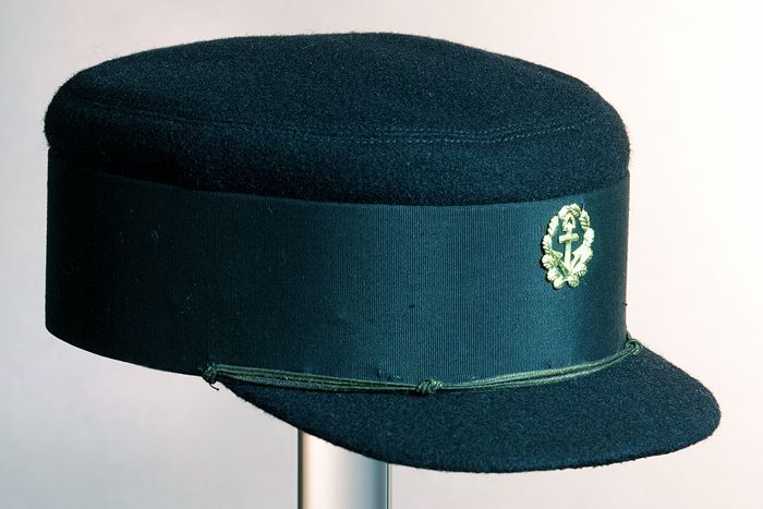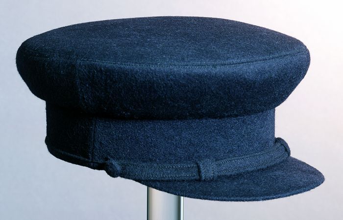 Pet van donkerblauw laken, schipperspet