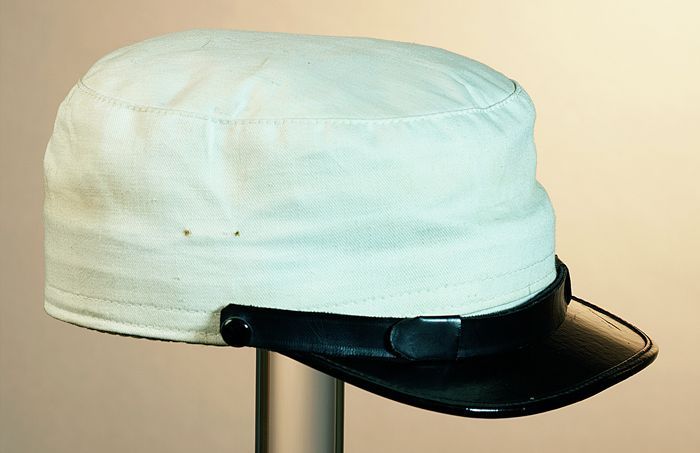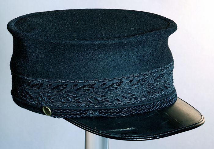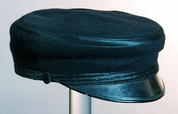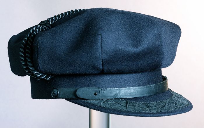 Ovale herenpet, gebruikt door machinisten