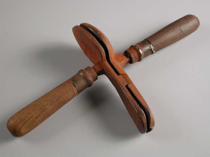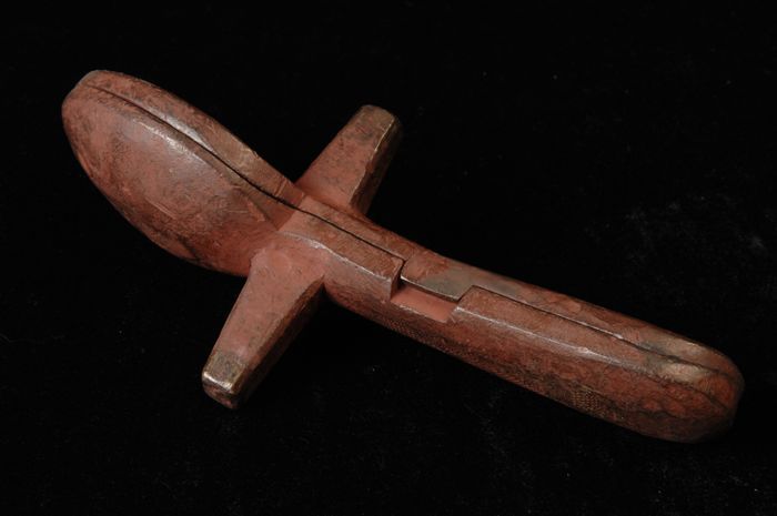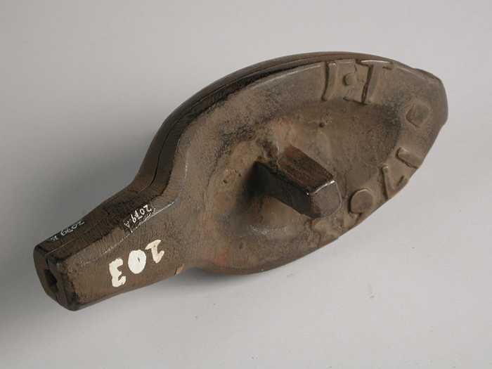 Tweedelige bronzen mal voor de schep met een houten ...