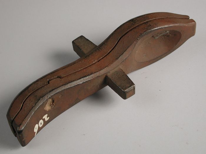 Tweedelige bronzen mal voor schep met houten steel