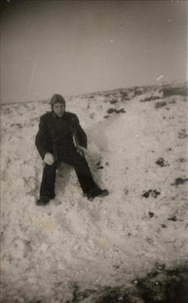 T/Sgt John W. Cahill; Jan Bos in de sneeuw