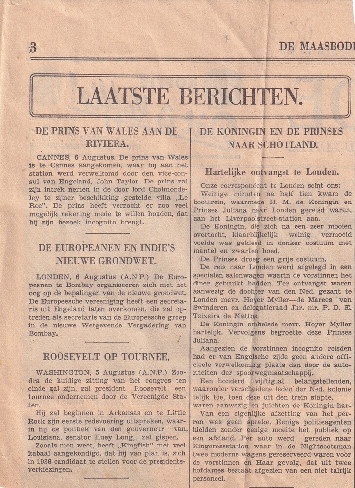Krantenartikel De Maasbode (zonder datering)