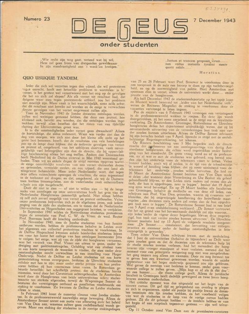 De Geus onder Studenten, 7 december 1943 , nummer 23