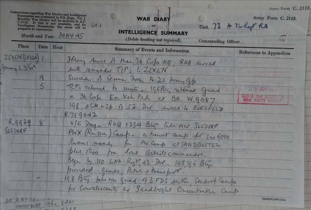War Diary 73rd Anti Tank Regiment RA, mei 1945
