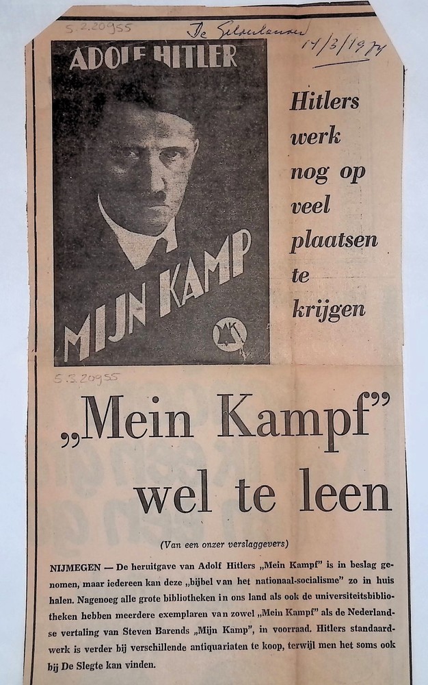 Krantenartikel 'Mein Kampf wel te leen', De Gelderla...