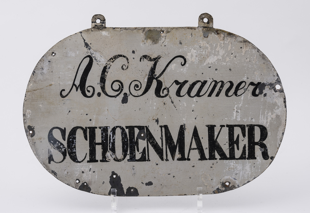 Uithangbord van zink, van Schoenmaker A.C. Kramer, 1...