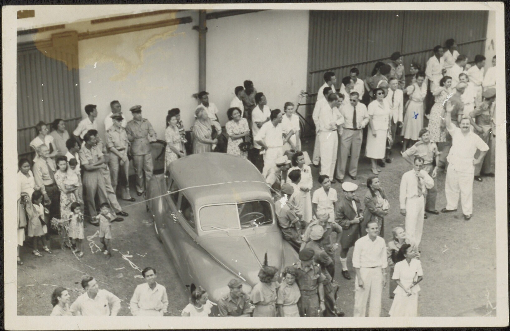 Afscheidnemers of afhalers op de kade in Tandjong Priok