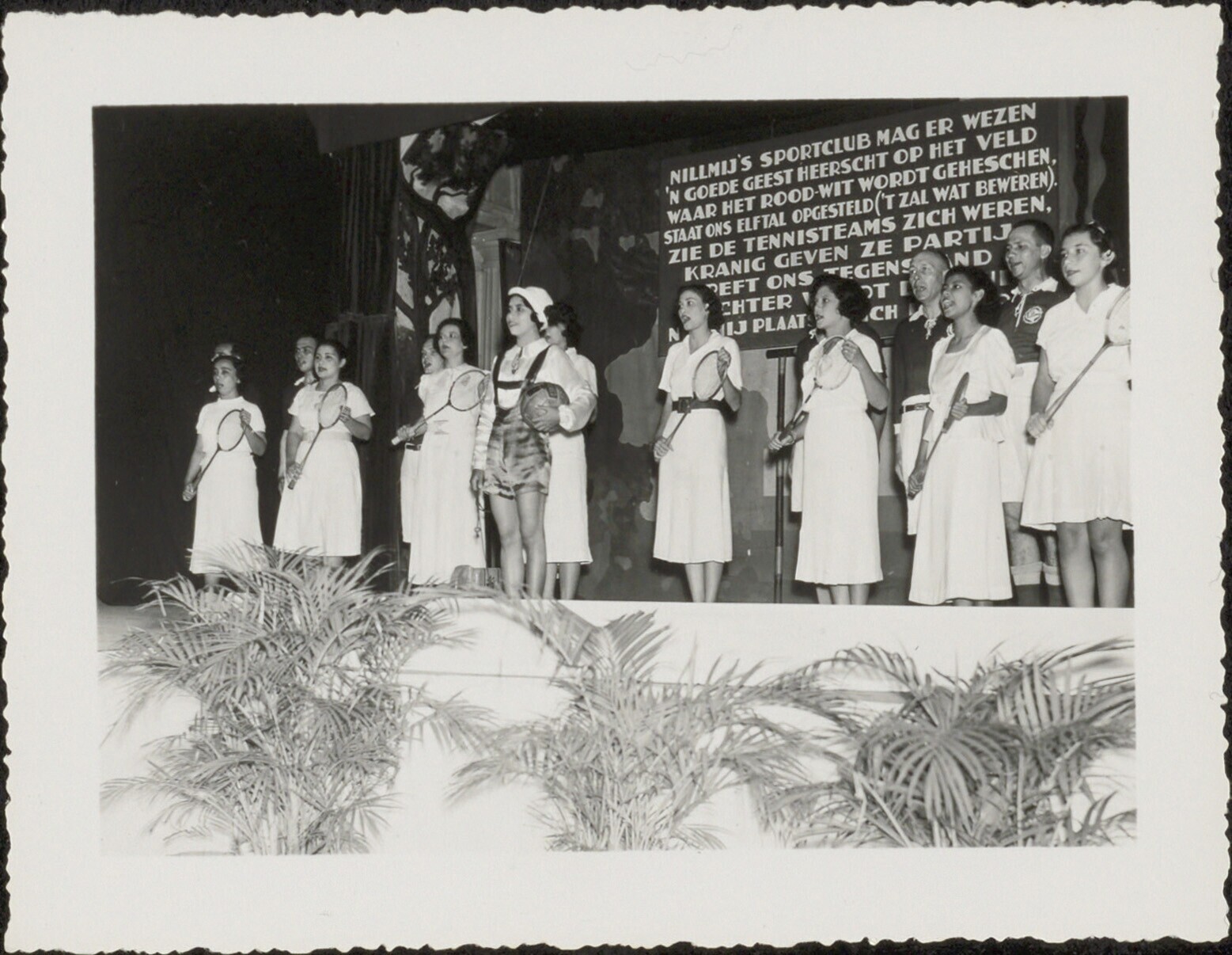 Groepsportret naast het clublokaal van de Bataviasch...