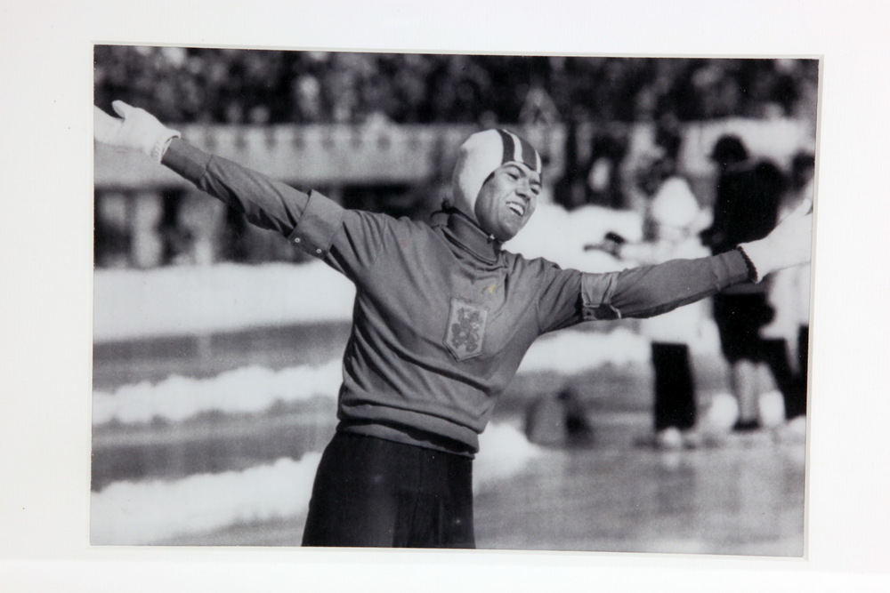 Zwart-witfoto van een Stien Kaiser op de Olympische ...