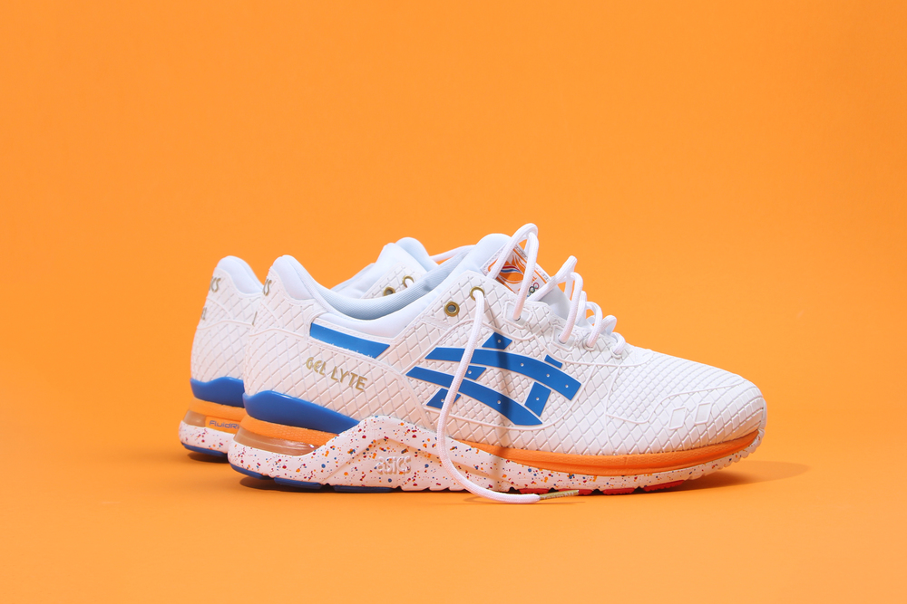 Een paar oranje sportschoenen Olympische zomerspelen...