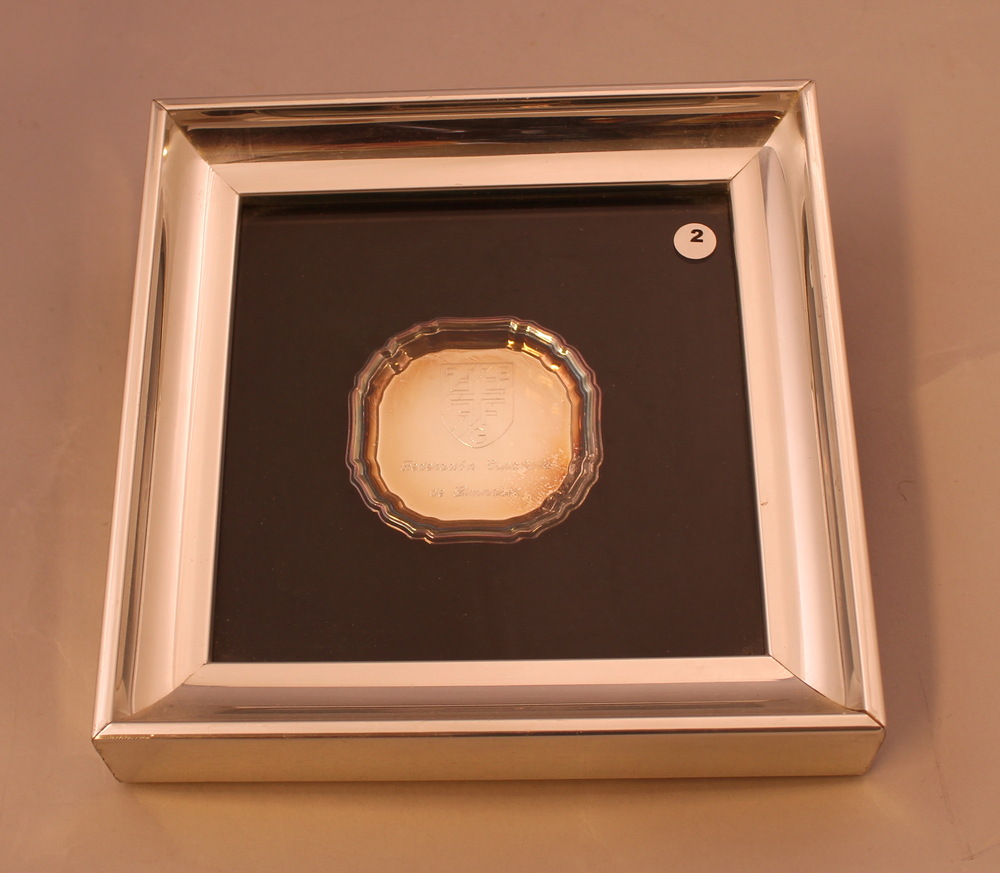 Wandbordje Zilver Spanje 29-4-2004, geschenk Koninkl...