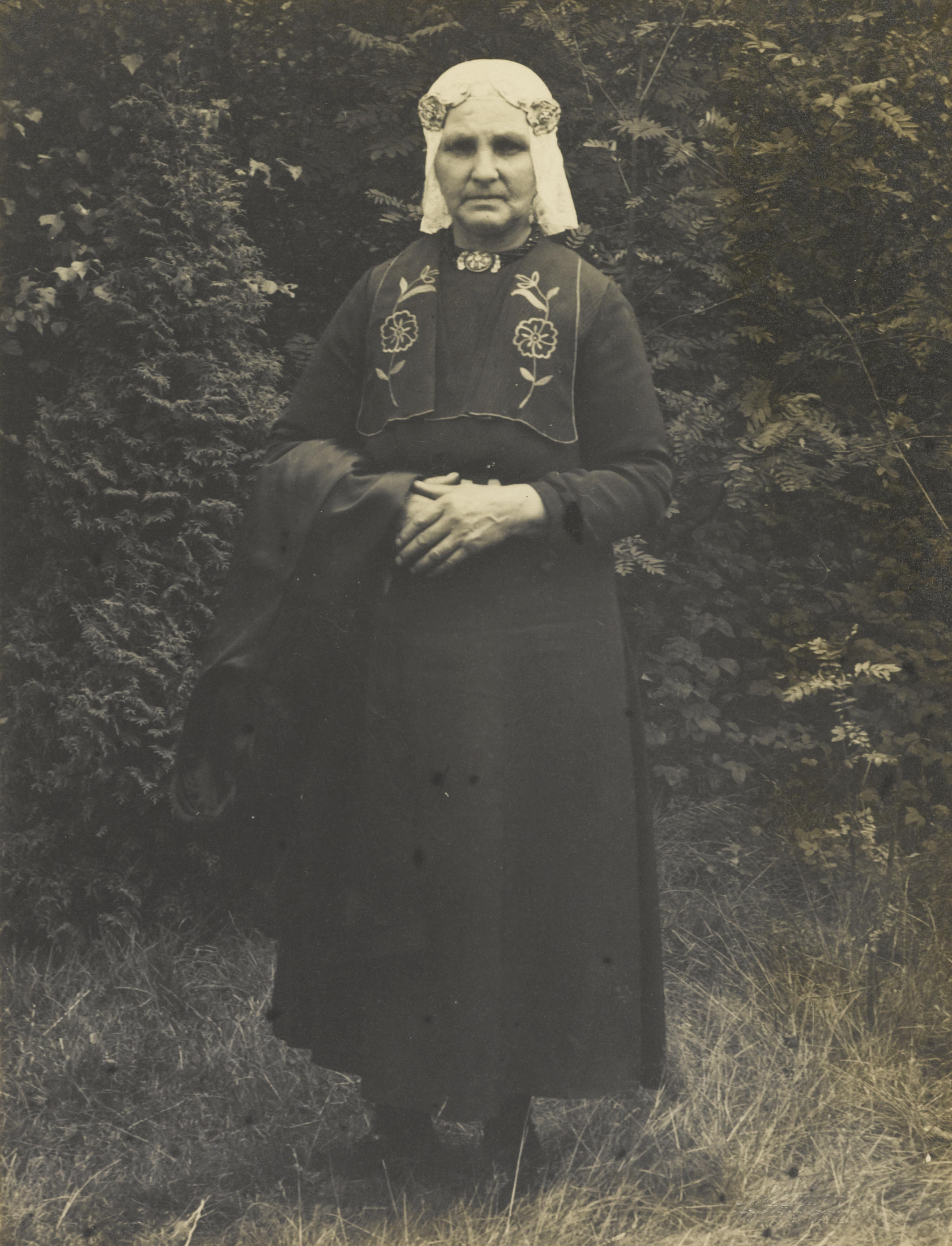 Vrouw uit Uffelte in Drentse streekdracht, 1943 (zwa...