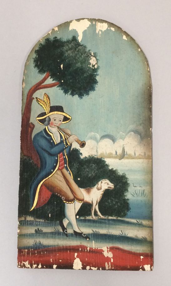 Stoeltjesklok met aan een der zijden een hoornblazen...