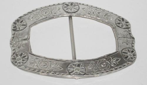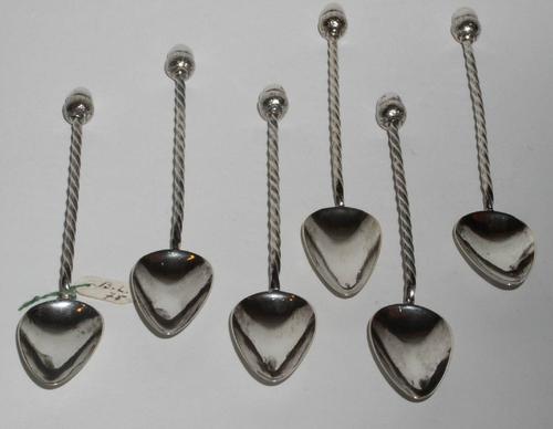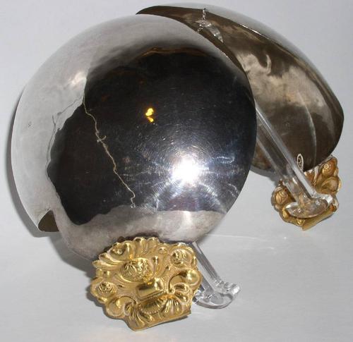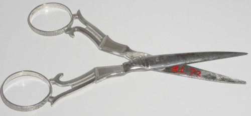 Zilveren oorijzer met koperen stiften of potknoppen.