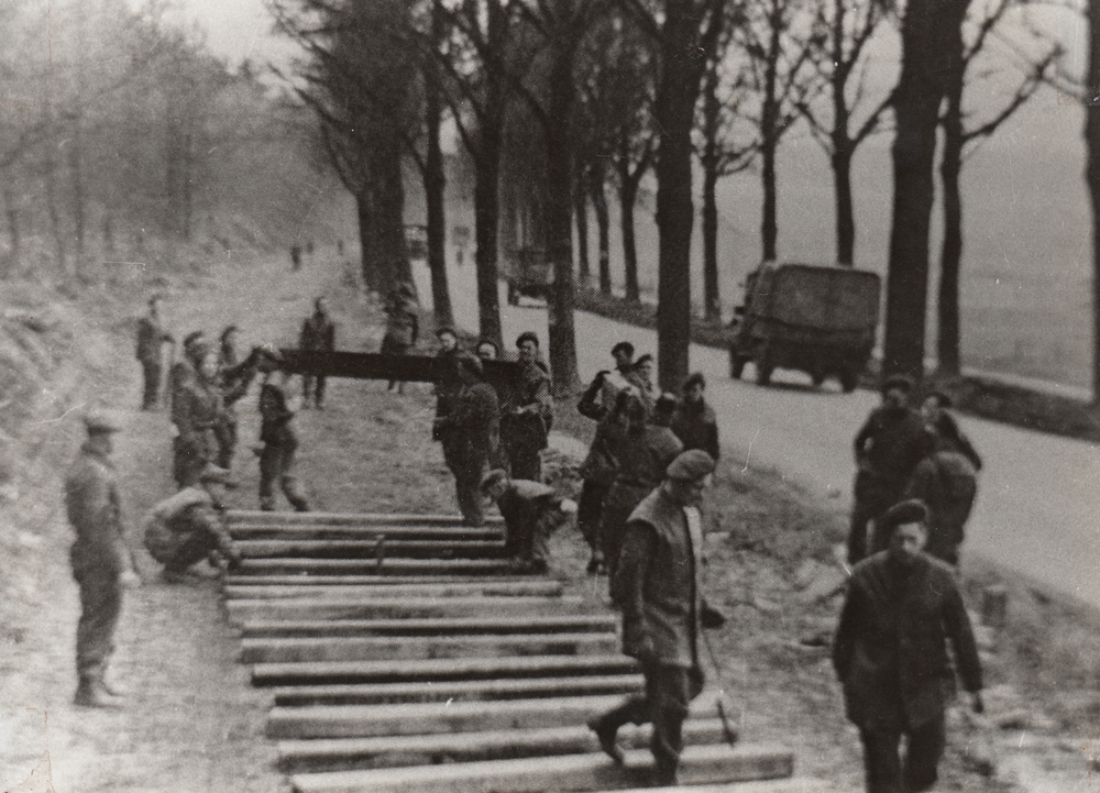 Foto van de aanleg van de militaire spoorbaan langs ...