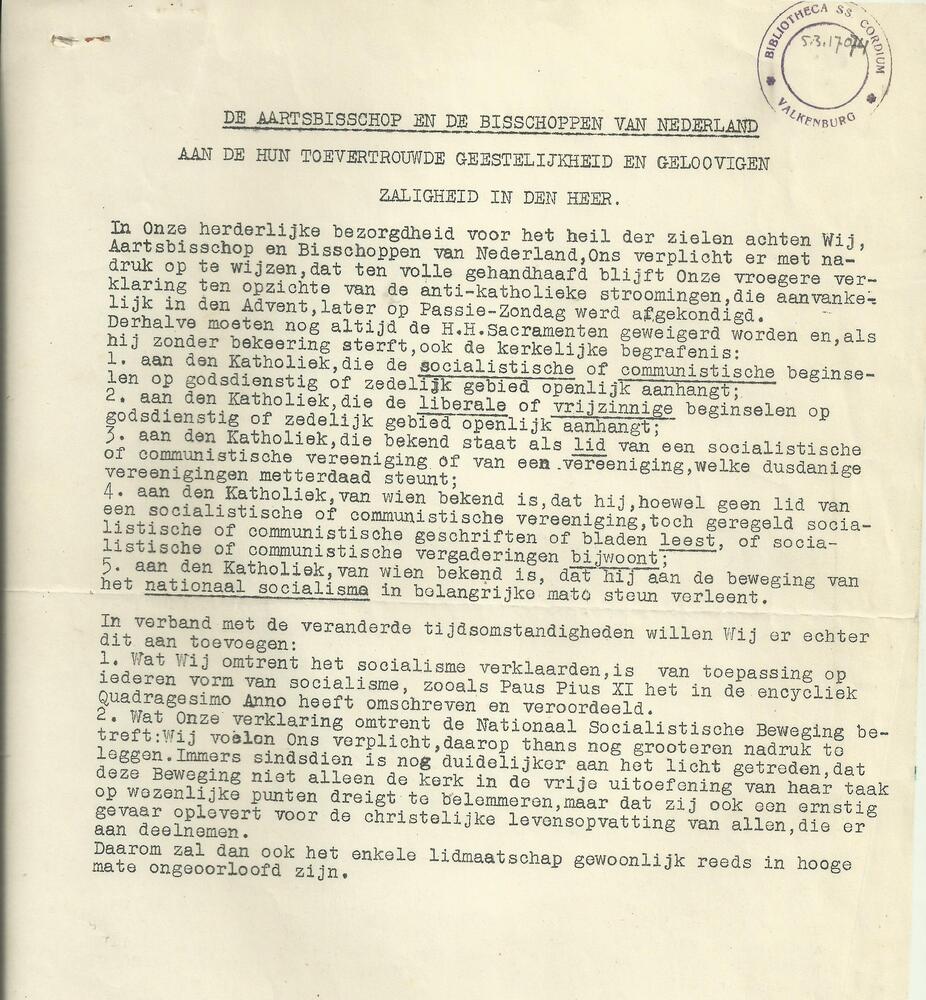 Brief van de Protestanten kerken en Roomsch-Katholie...