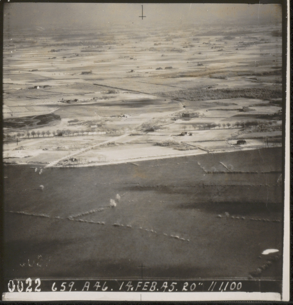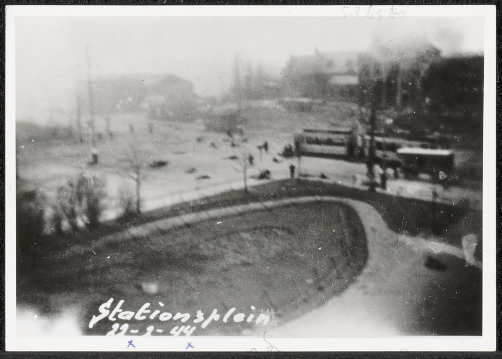 Nijmegen, 22 februari 1944; gezicht op Houtstraat va...