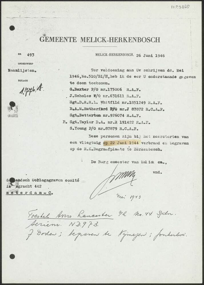 Oorkonde "In Dankbaarheid gedenken wij onze gevallen...