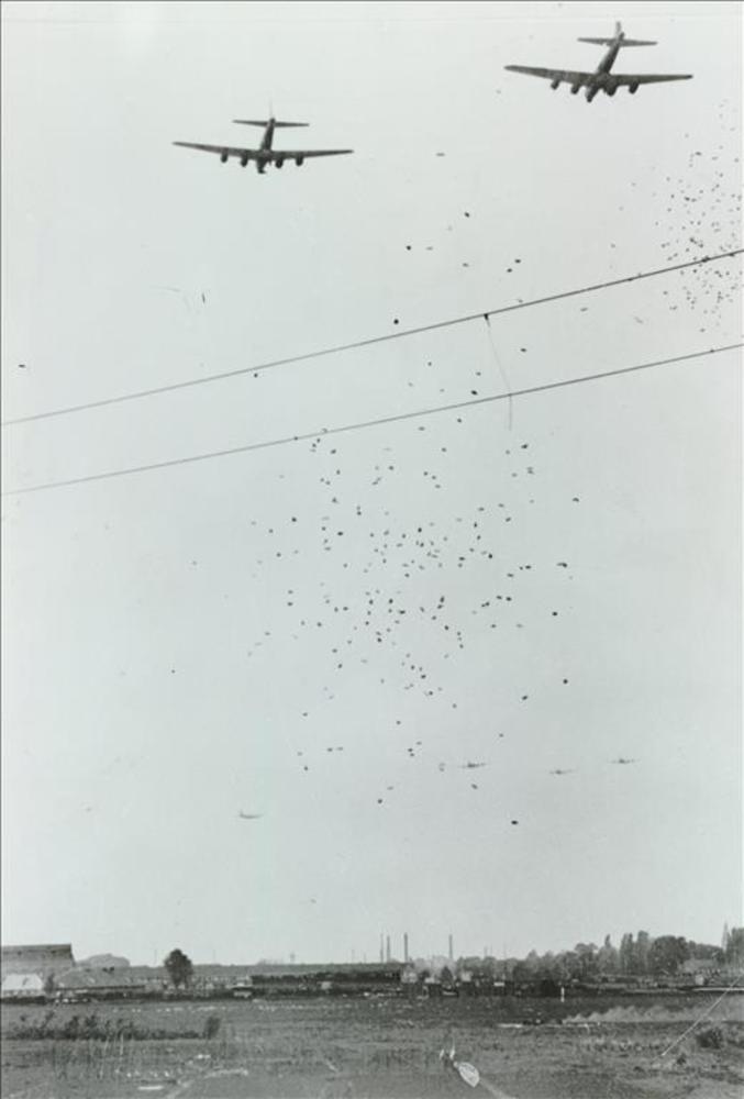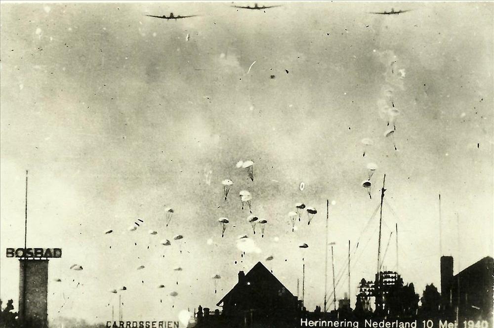 landende Duitse parachutisten Ypenburg/Bosbad Den Haag