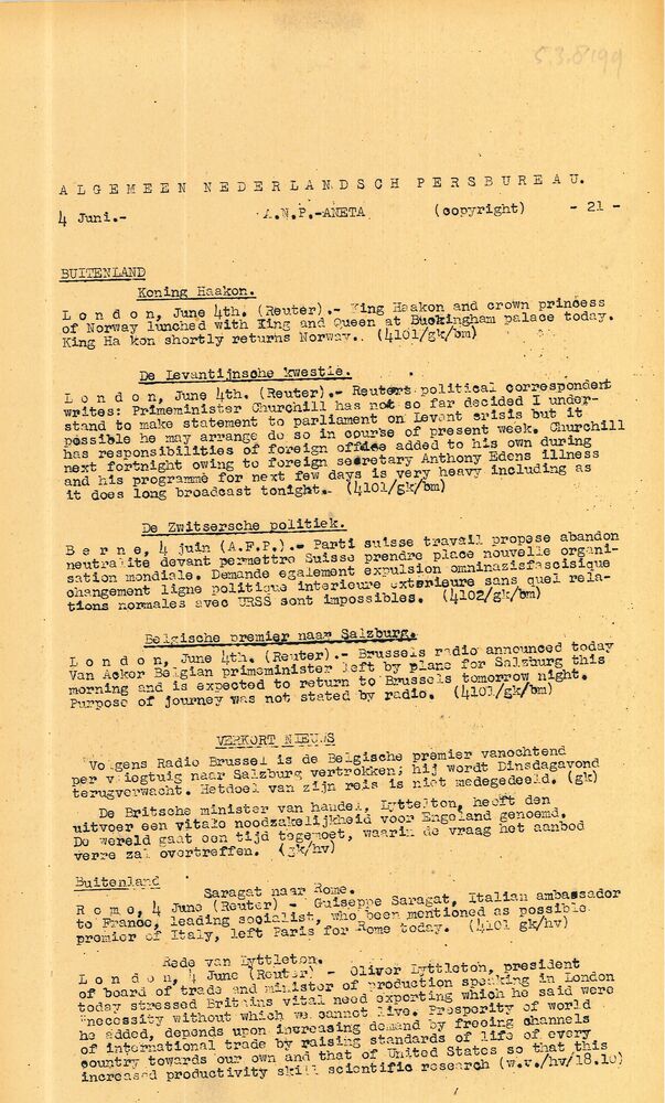 Vel: Algemeen Nederlandsch Persbureau, mededelingen,...