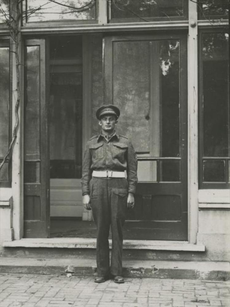 militair in Brits uniform, Nederlandse 2e Lt met wit...