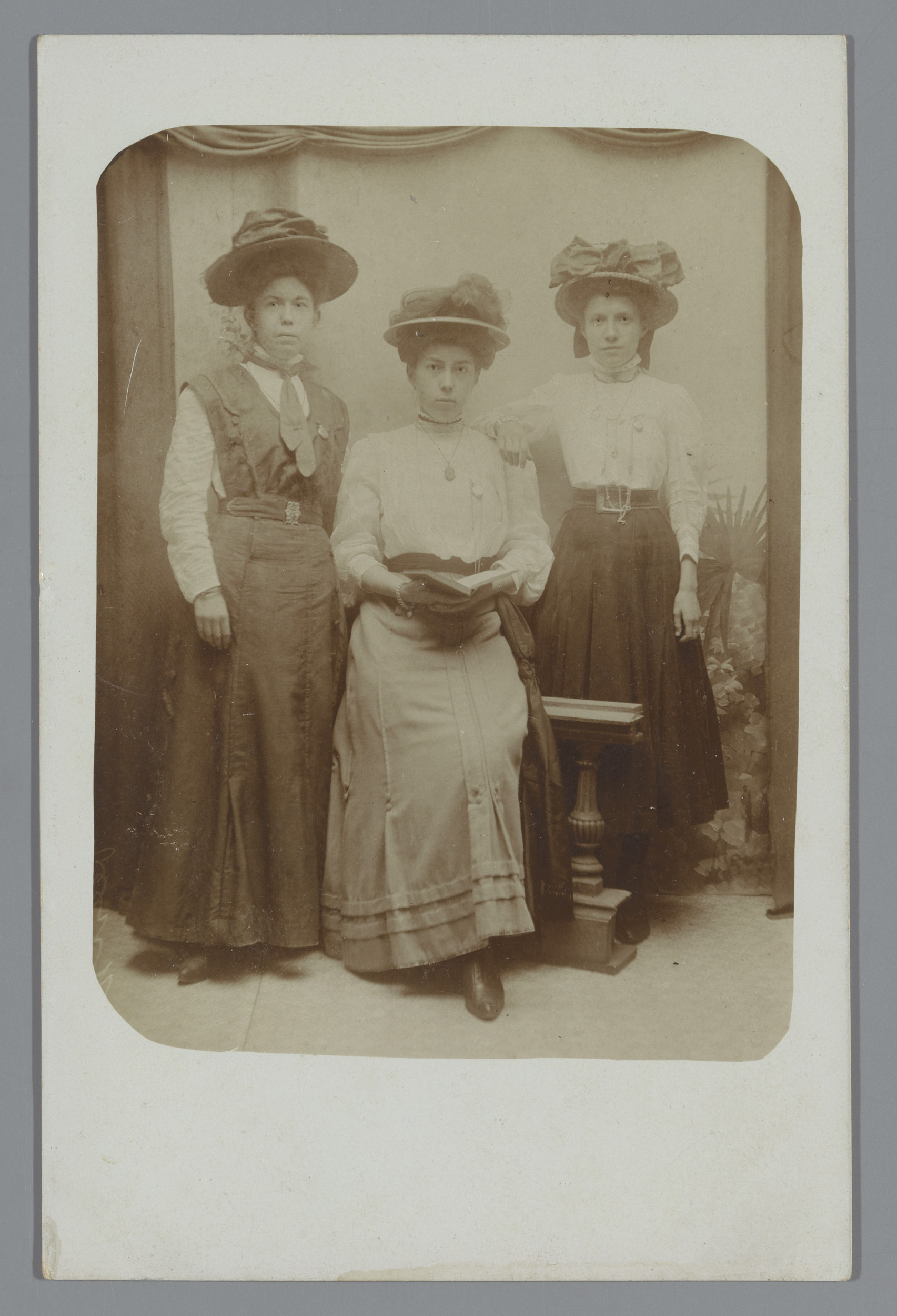 Studioportret van drie onbekende vrouwen