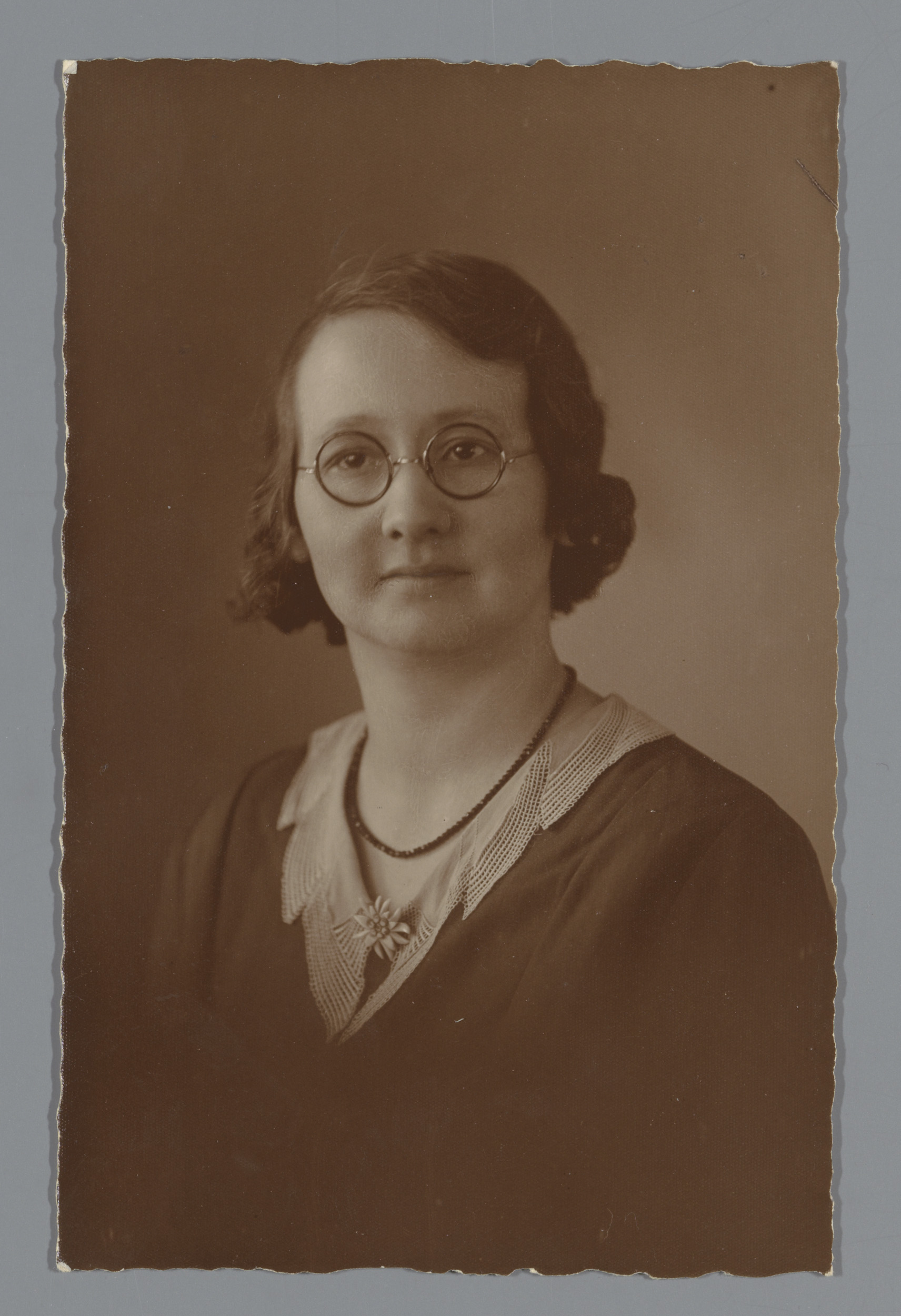 Portret van een onbekende vrouw met een bril