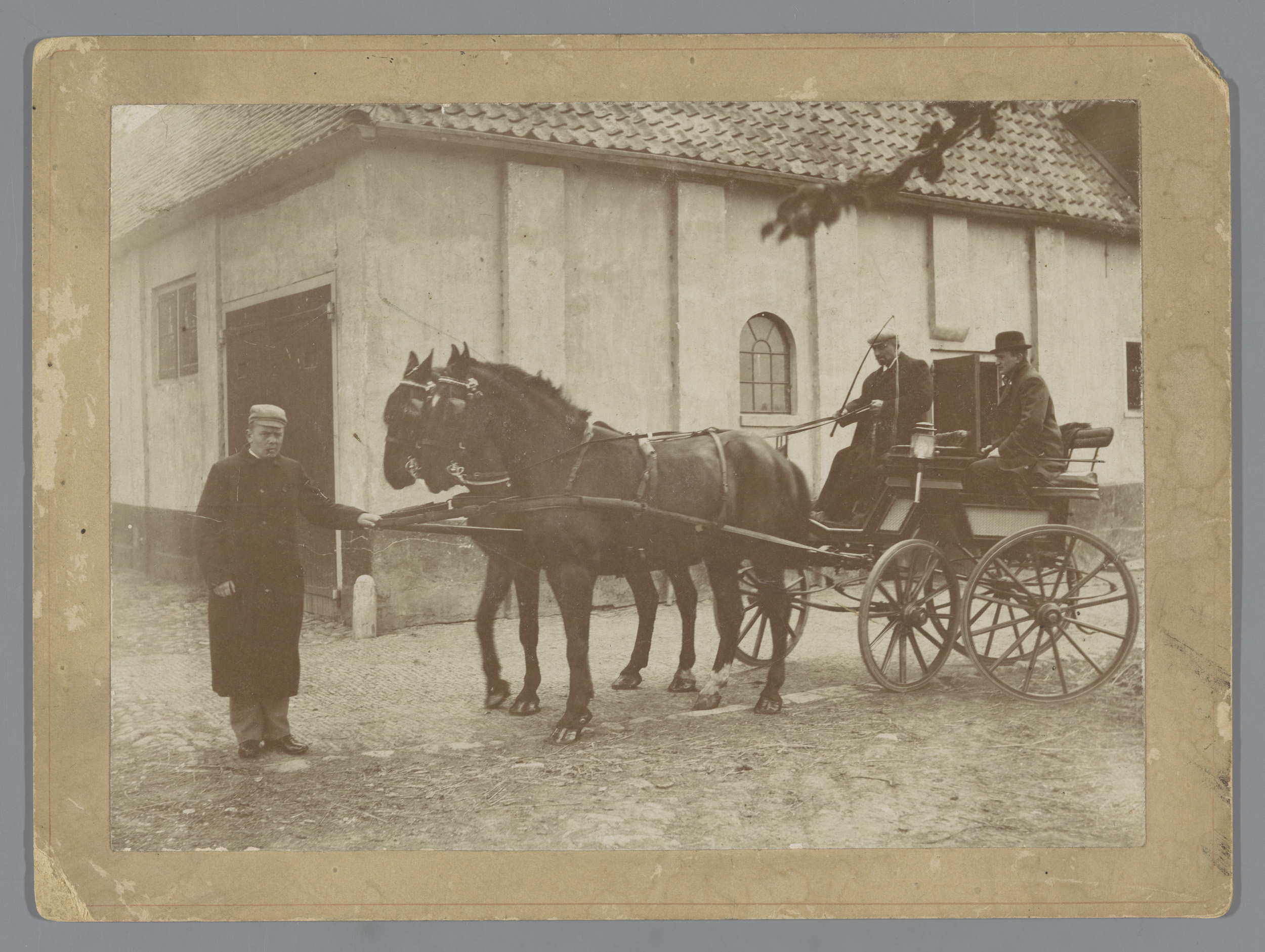 Paardenkoets voor een woning