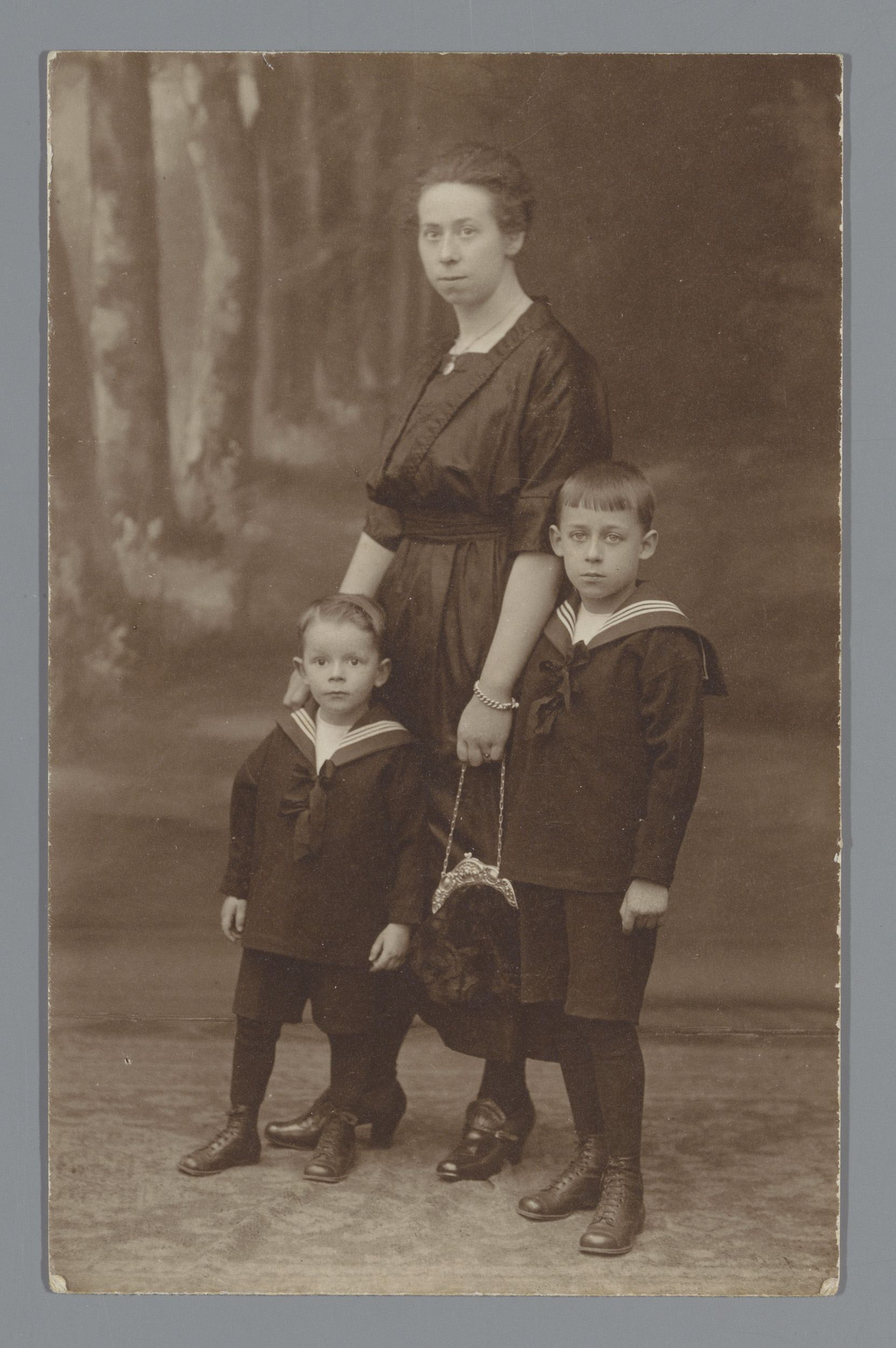 Studioportret van drie onbekende jongemannen