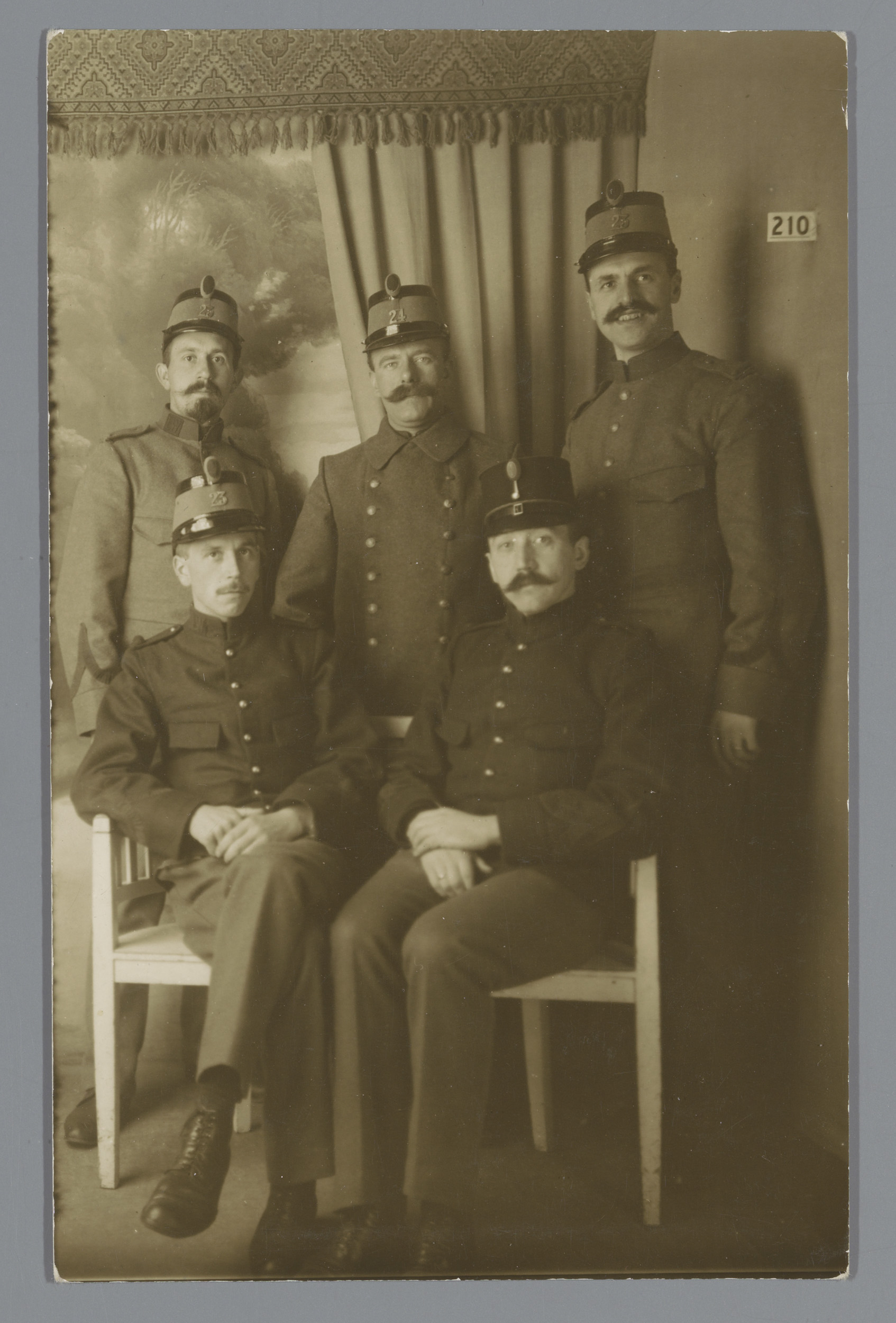 Portret van vijf onbekende mannen in uniform