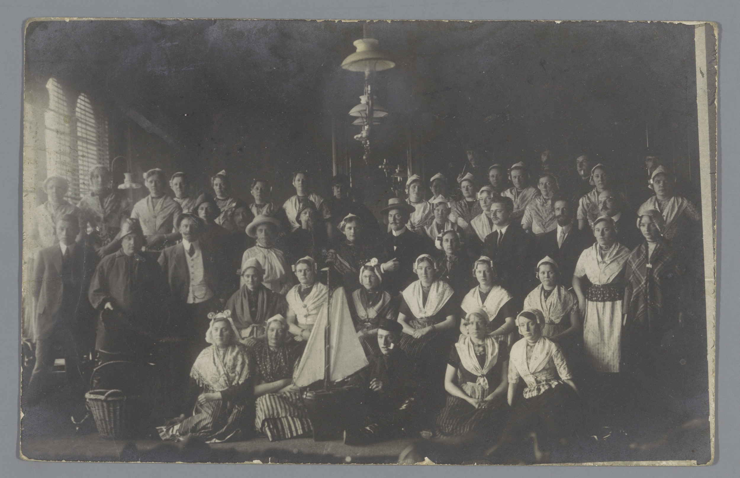 Groepsportret van (vermoedelijk) een verkleed theate...