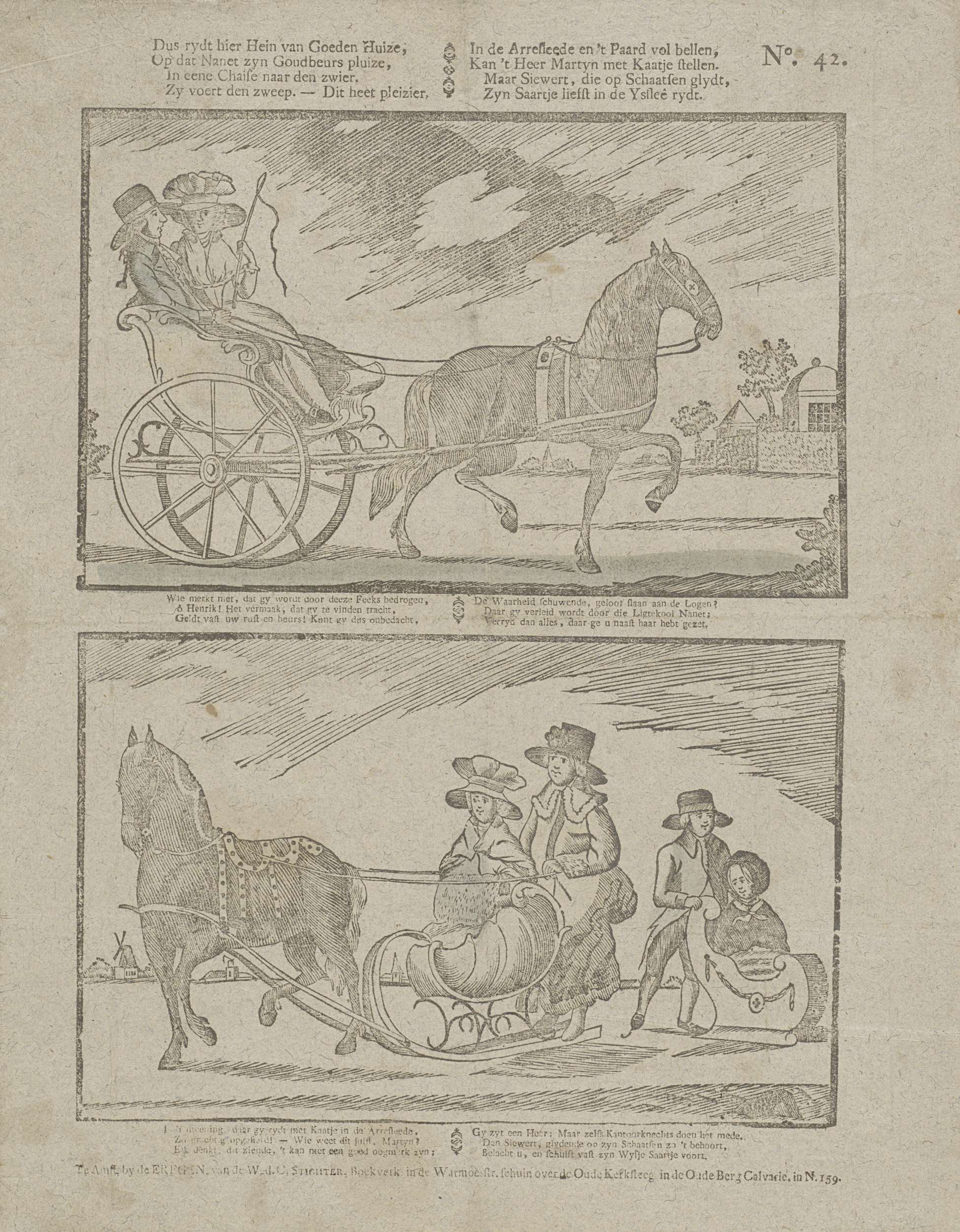Zo ziet men groote lieden ryden, / In koetsen, op 't...