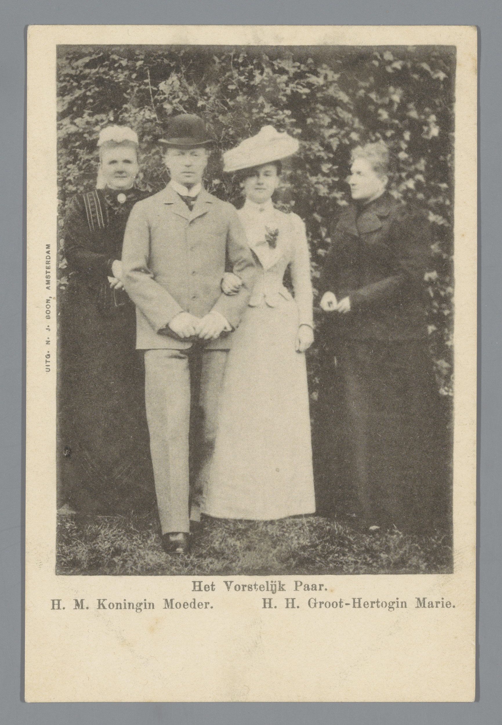 Het vorstelijk paar. H.M. koningin moeder. H.H. groo...