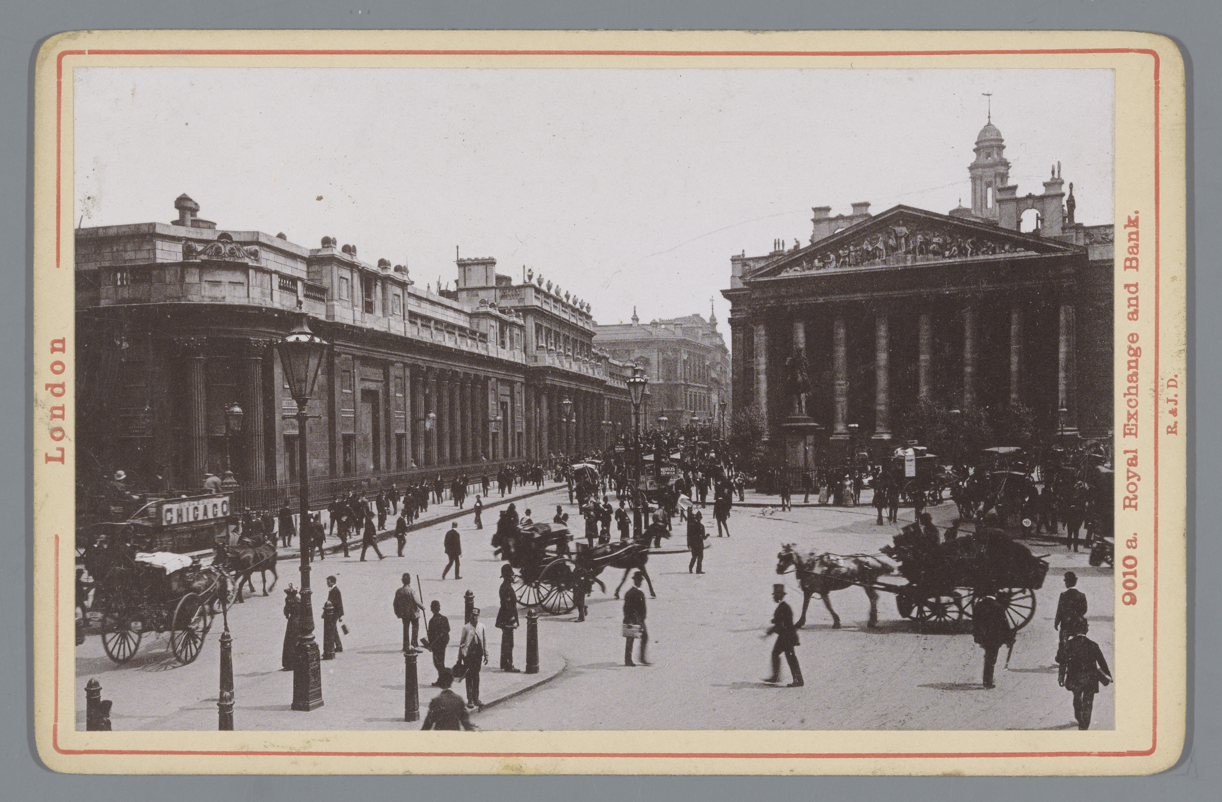 Gezicht op de Royal Exchange en Bank in Londen