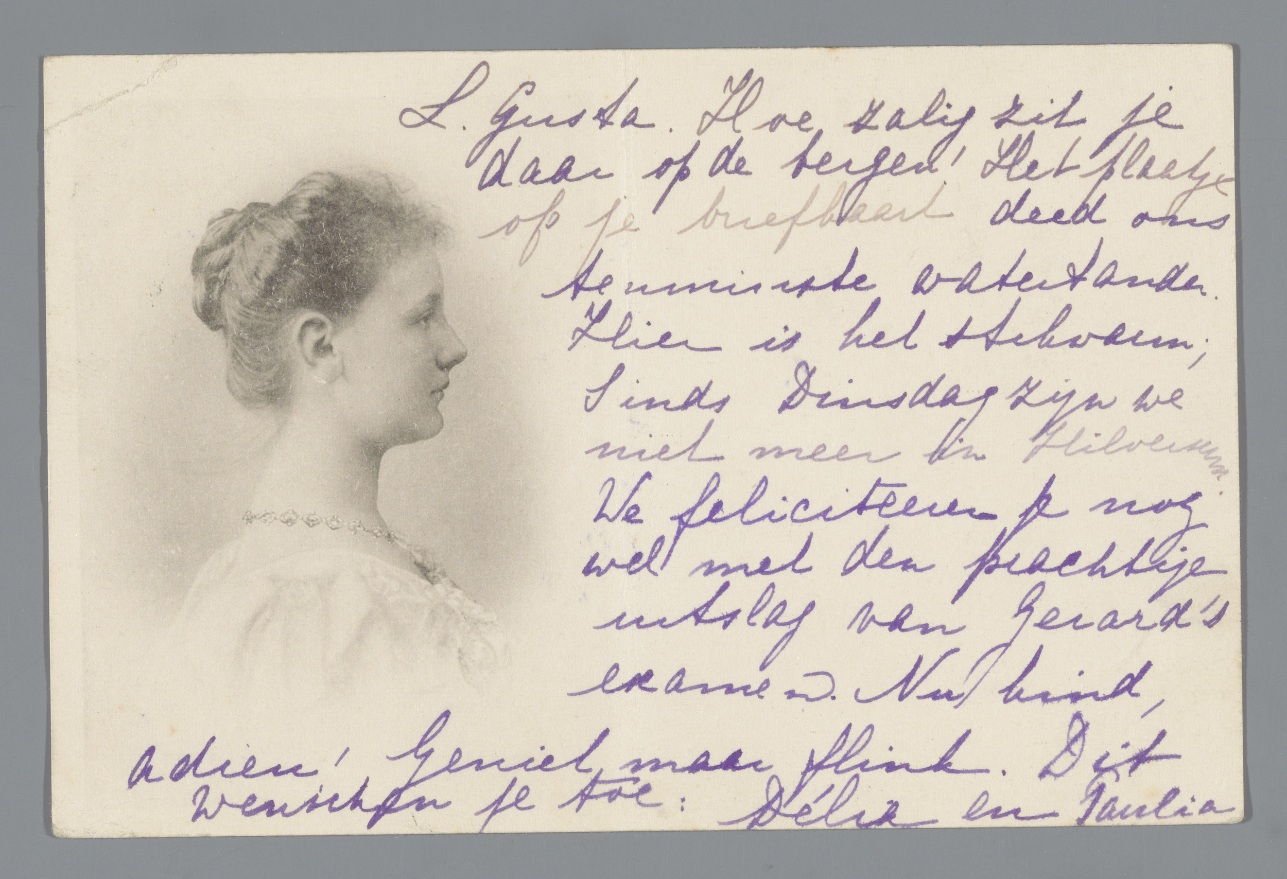 Wenskaart met een portret van prinses Juliana