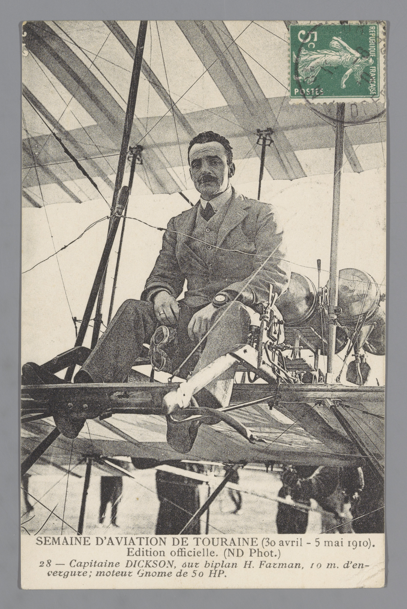 Portret van Bertram Dickson op het vliegtuig van Hen...