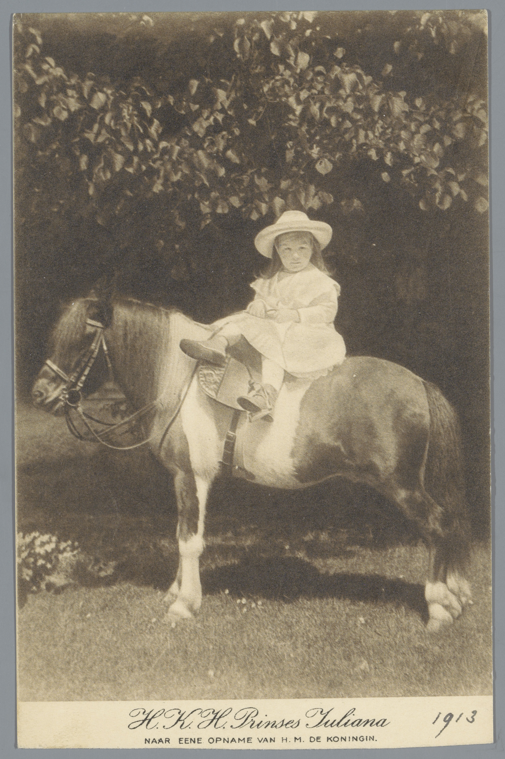 Portret van prinses Wilhelmina met haar pony