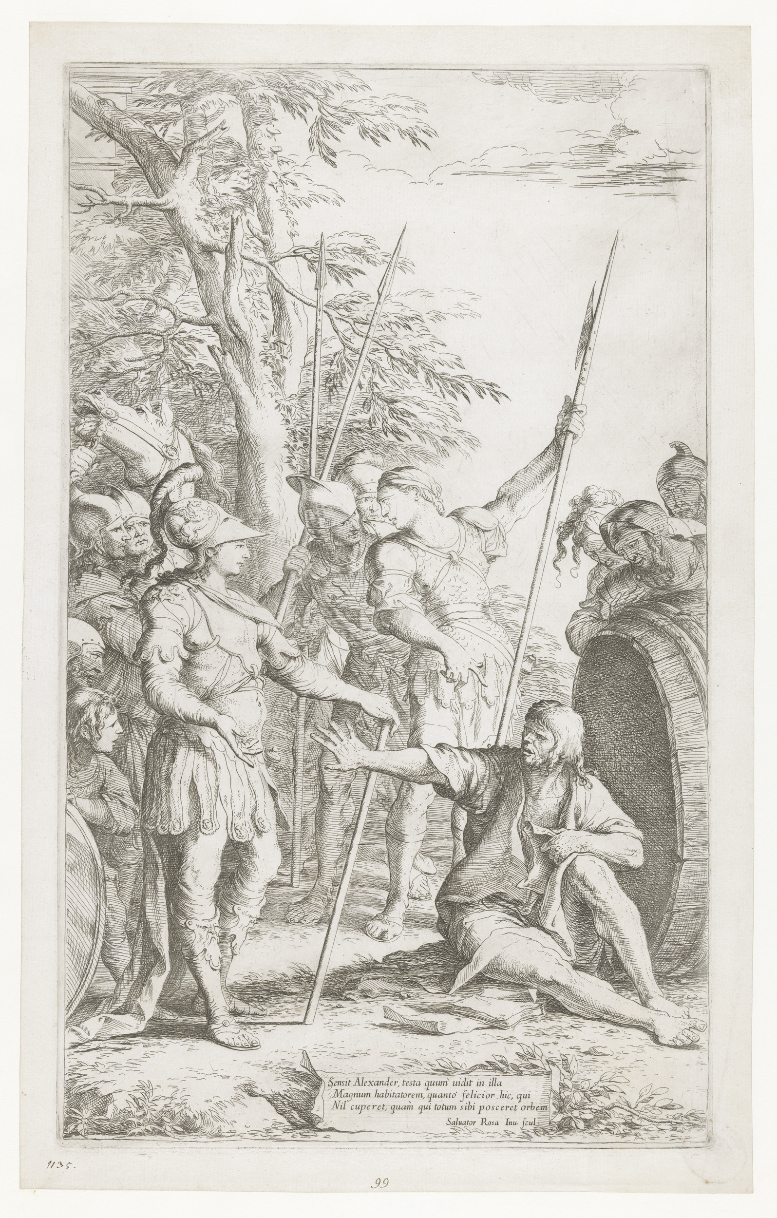 Diogenes vraagt Alexander niet in zijn licht te staan