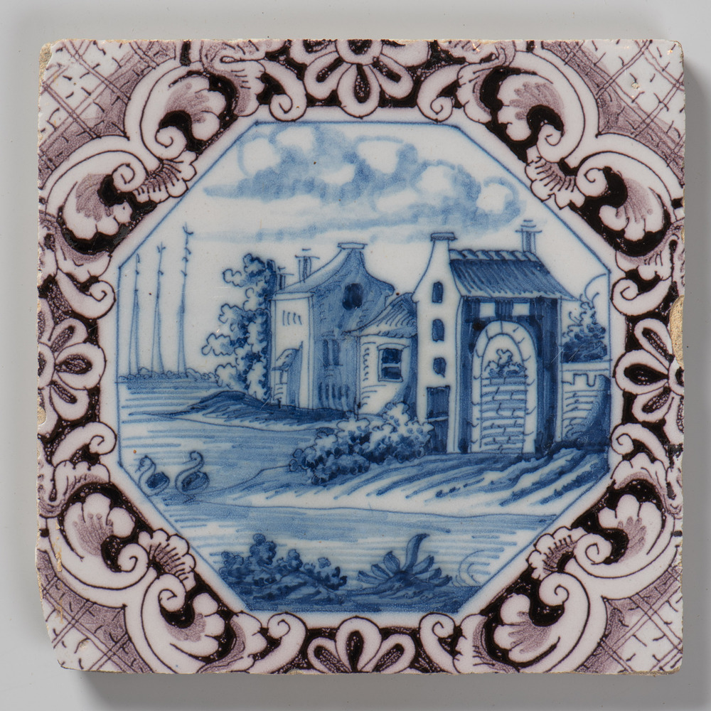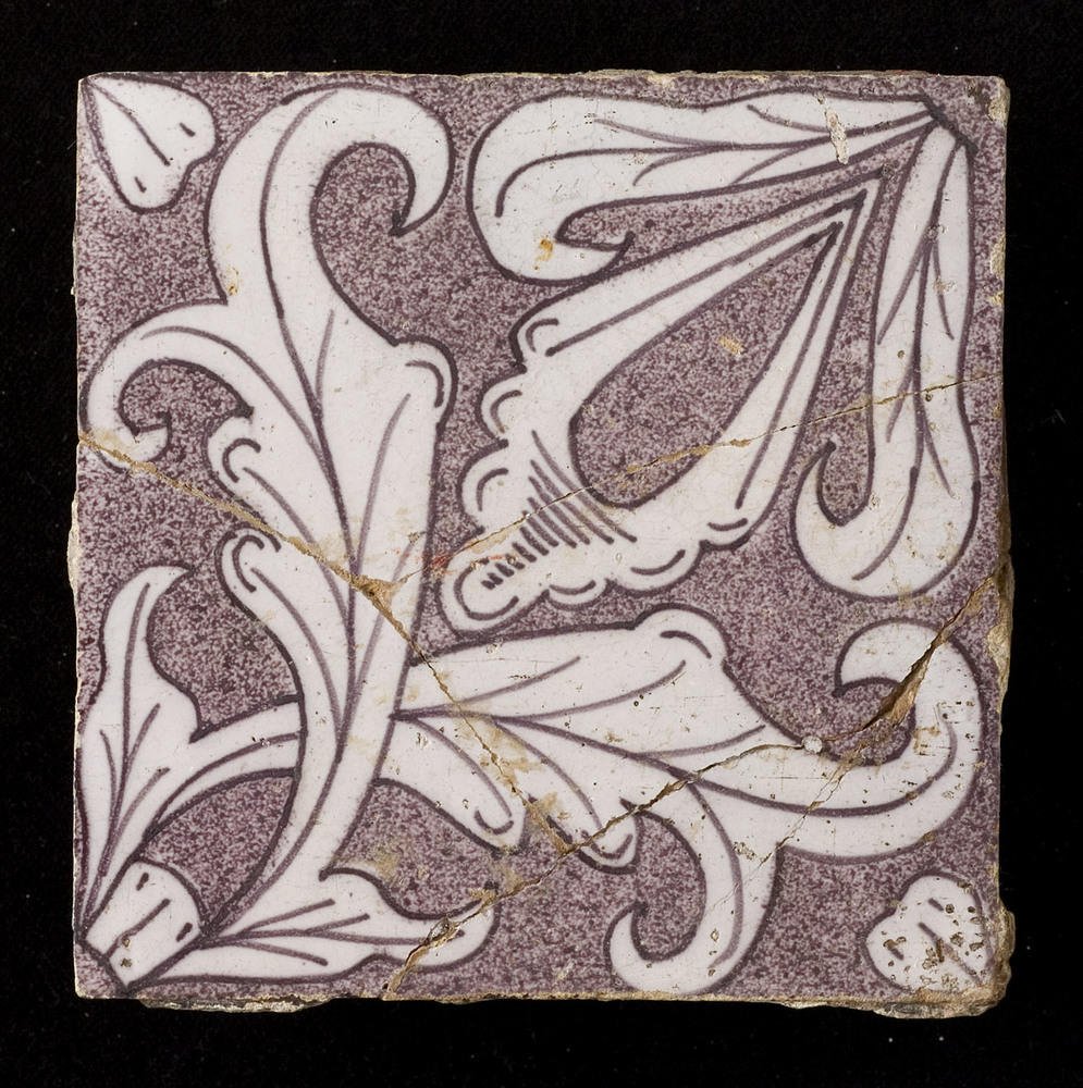 Tegel van keramiek met tinglazuur, voorstellende: or...