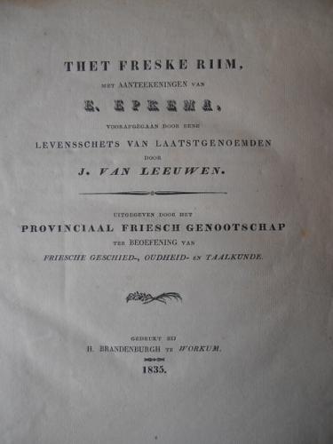 1 Gysbert Japicx Friesche Rijmlerije Ed. Epkema 1821