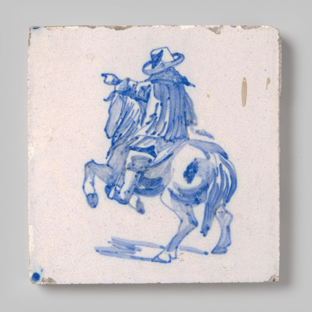 tegel van keramiek met tinglazuur, voorstellende: Lo...