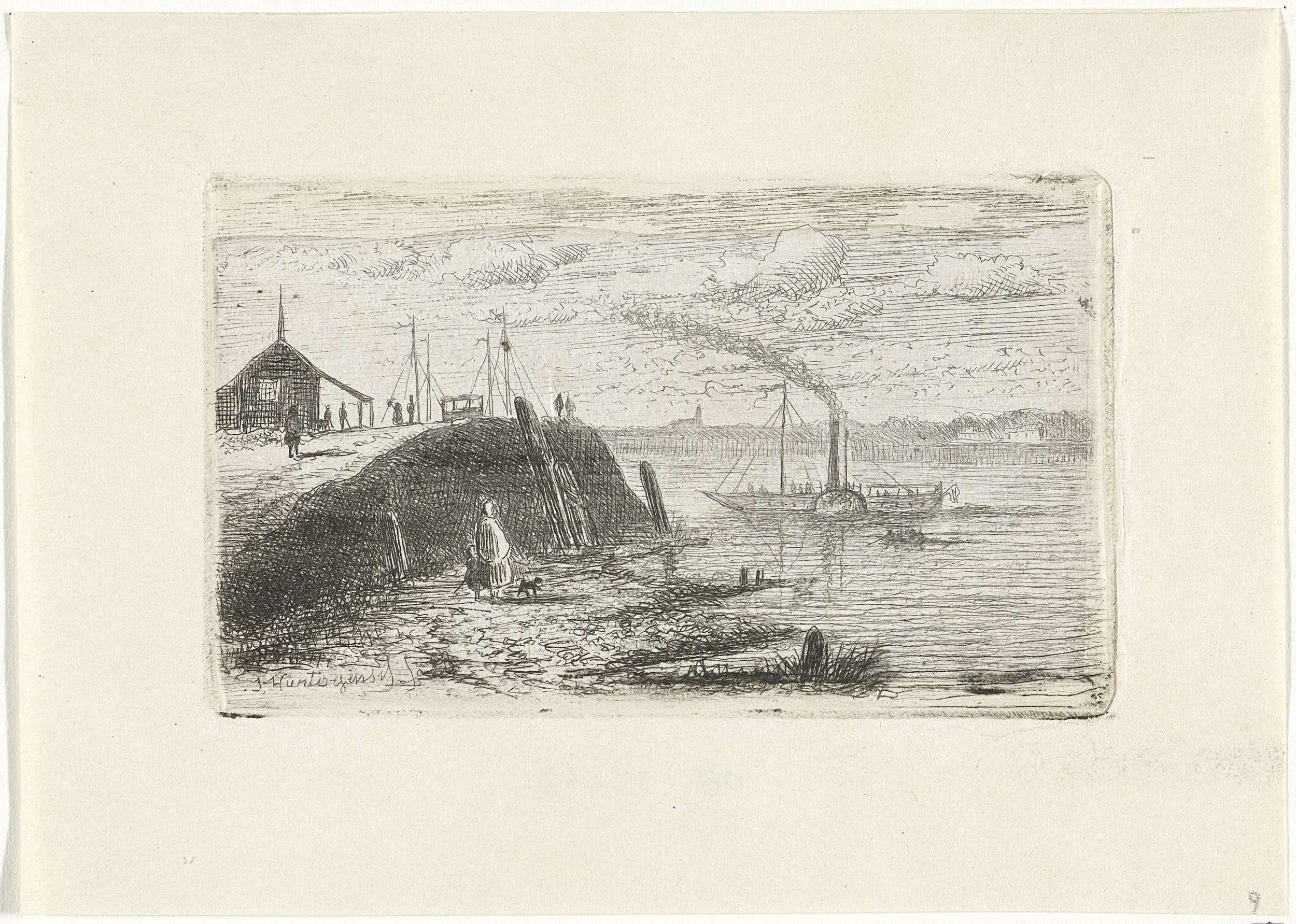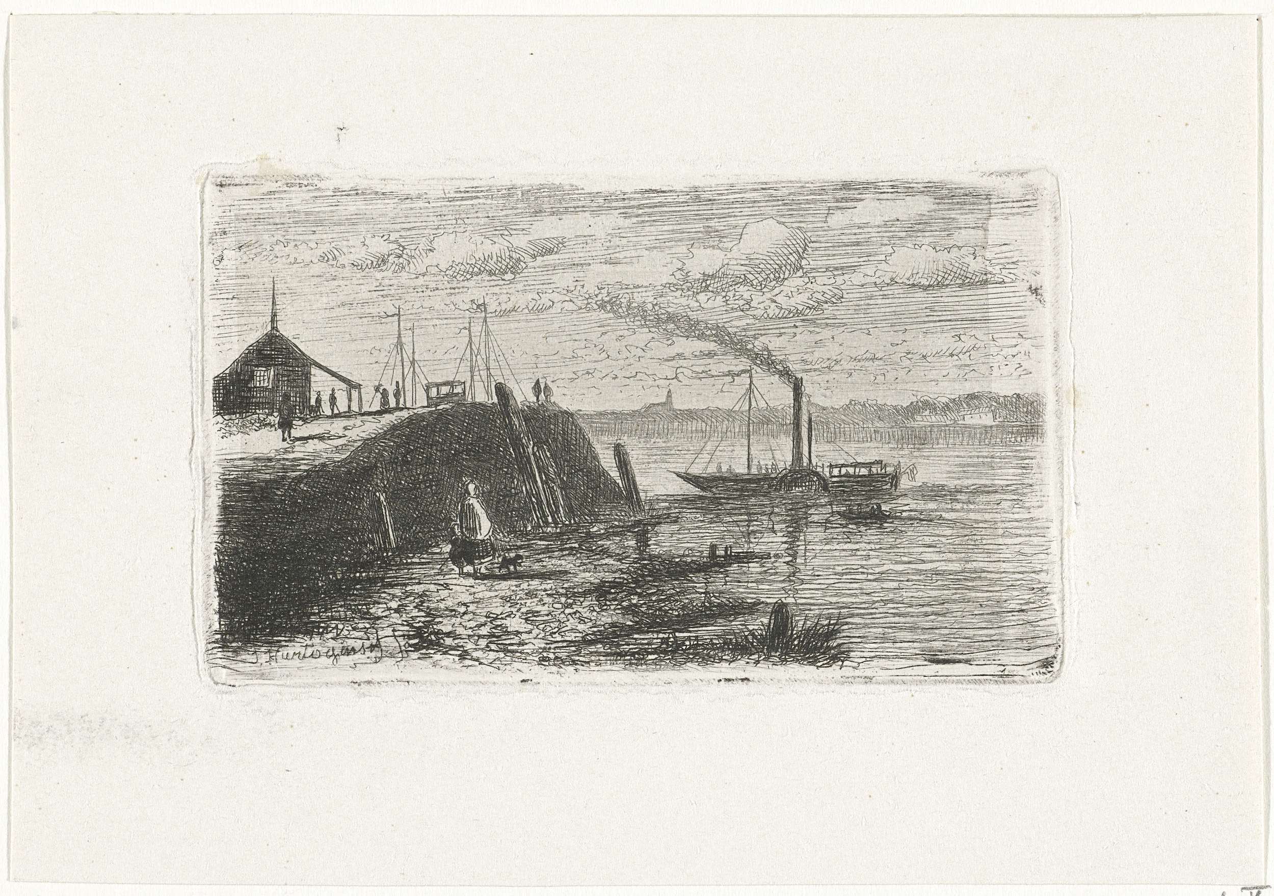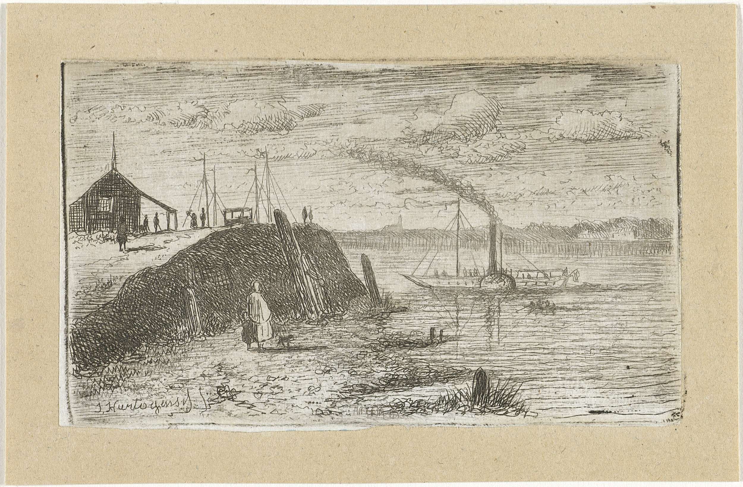 Riviergezicht met een stoomboot